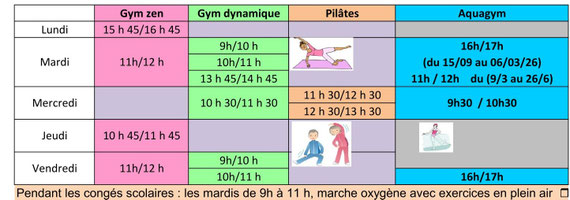 - 4ᵉ cours de 13h50 à 14h50 Gym dynamique senior (arrivée à 13h40)